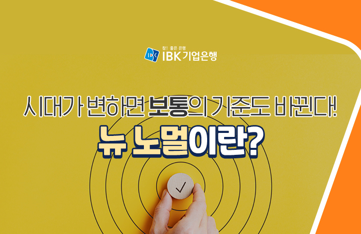 세상도 마찬가지입니다. 때론 기술의 발달로 인해, 때론 자본과 환경에 의해 우리가 말하는 ‘일반’의 형태와 정의가 하릴없이 변하게 됩니다. 오늘 IBK기업은행에서는 한 시대 또는 세대가 품은 ‘일반’의 기준을 깨고 새롭게 피어나는 일반, ‘뉴 노멀’의 정의와 다양한 시각에 대해 자세히 알려드리겠습니다.