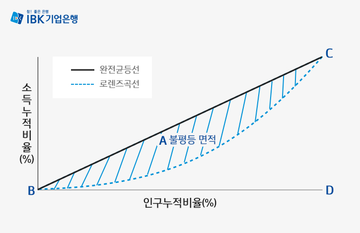 여기서 하나 더! 지니계수를 측정할 때 빠질 수 없는 ‘로렌츠 곡선’