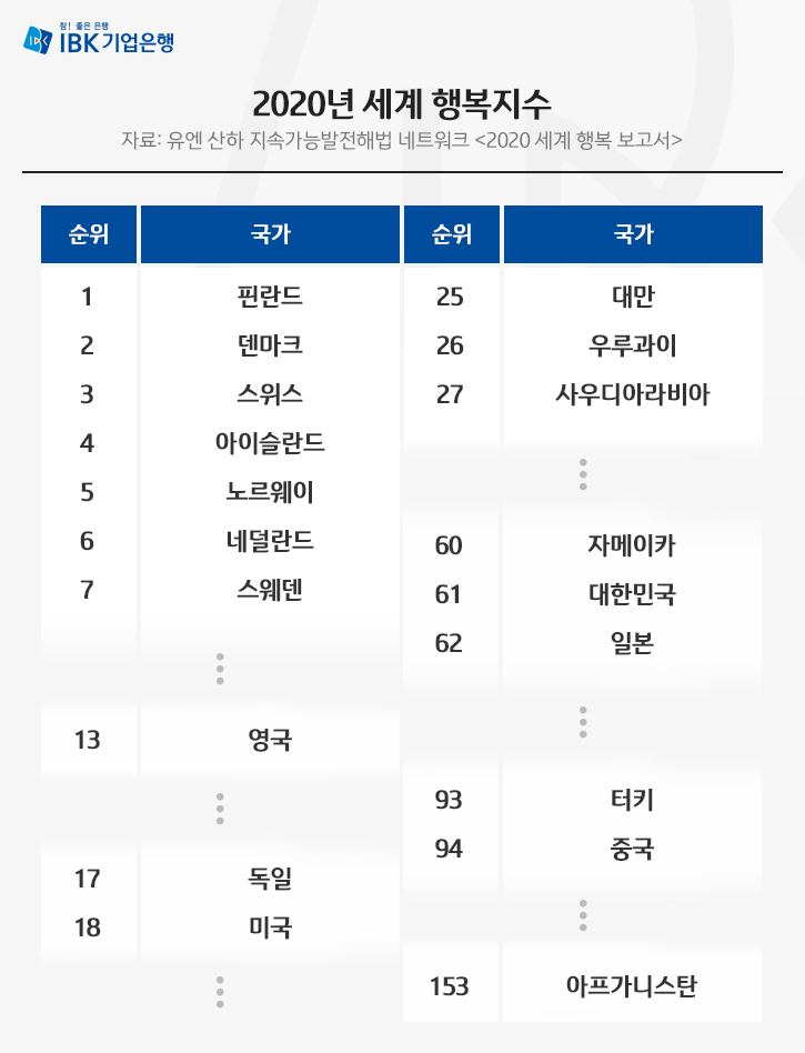 대한민국 행복지수는 153개국 중 61위, 우리가 행복을 말하는 기준은?