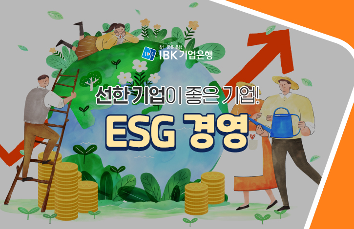 언젠가부터 사람들이 기업을 바라보는 방식도 이와 크게 다르지 않게 되었습니다. 기업이 본질적으로 철저히 이익 창출을 위해 존재하는 조직임에도, 사회의 문제 앞에 어떤 자세를 취하는지, 얼마나 윤리적이고 도덕적인지가 기업의 가치를 결정하는 데 많은 영향을 끼치게 된 것입니다. 오늘 IBK기업은행에서는 최근 전 세계 기업 경영의 판도를 바꾸고 있는 ‘ESG 경영’에 대해 알아보겠습니다.