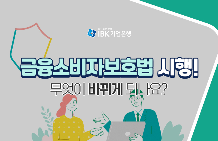 2008년 국제금융위기 이후 금융소비자에 대한 체계적인 보호가 필요하다는 목소리가 점점 높아지면서, 10년이라는 긴 시간 끝에 드디어 ‘금융소비자보호법’이 지난 3월 25일부터 시행되었습니다. 은행, 보험사, 카드사 할 것 없이 대한민국 금융업계 전체를 긴장하게 만드는 제도라고 하지만 정작 소비자들은 아직 그 내용에 대해 정확히 알지 못해 어리둥절한 분들이 많은데요. 오늘 IBK기업은행에서는 금융소비자를 위한 든든한 갑옷이 되어 줄 ‘금융소비자보호법’을 보다 이해하기 쉽게 알려드리겠습니다.