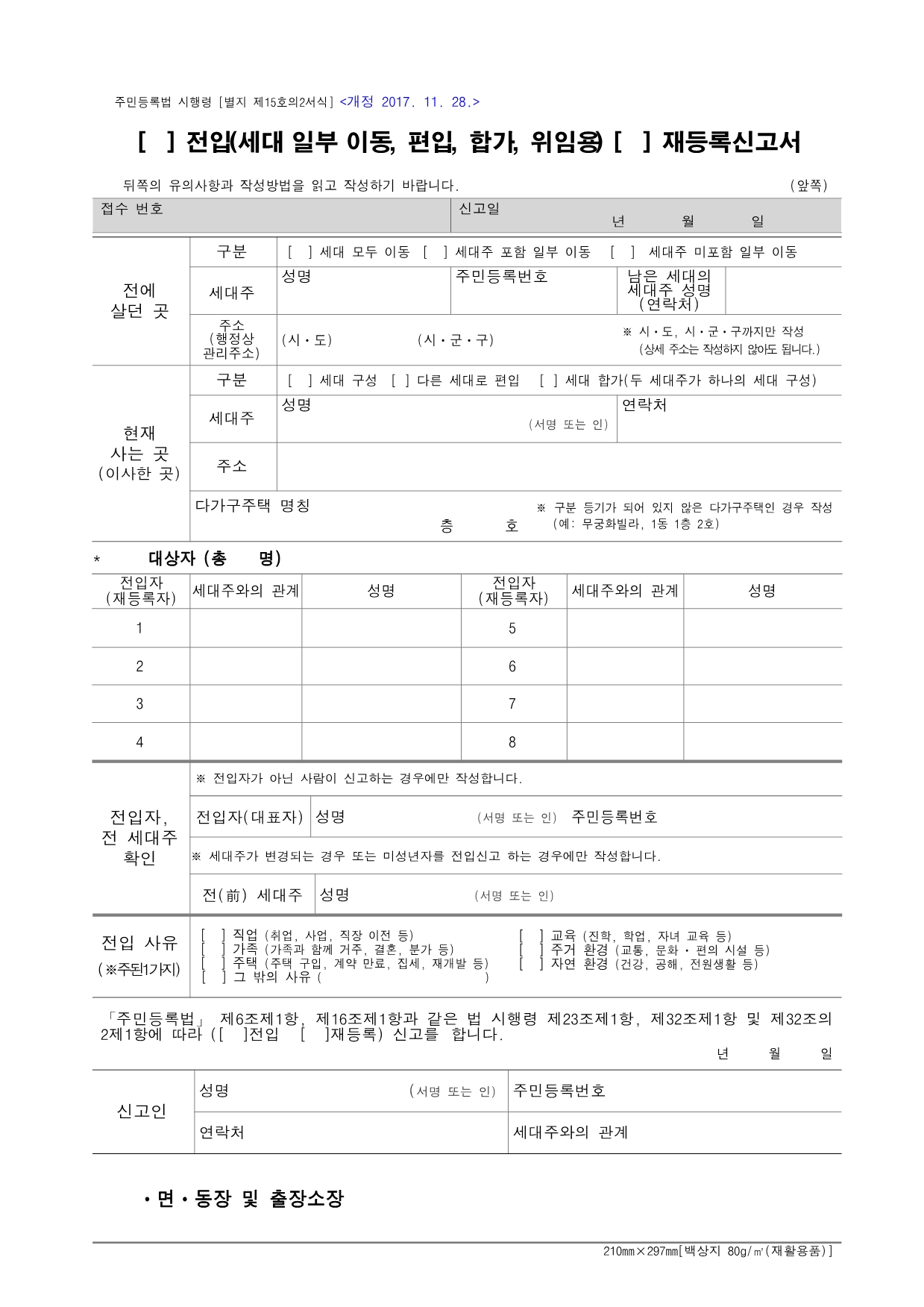 전입신고를 하는 방법은 두 가지입니다. 첫 번째는 동주민센터를 방문해 비치된 전입신고서를 작성해 제출하는 것인데요. 직접 방문해 처리할 경우 세대주는 신분증만, 세대주가 아닌 경우 세대주 신분증과 도장, 신청하는 사람의 신분증을 모두 지참해야 합니다.