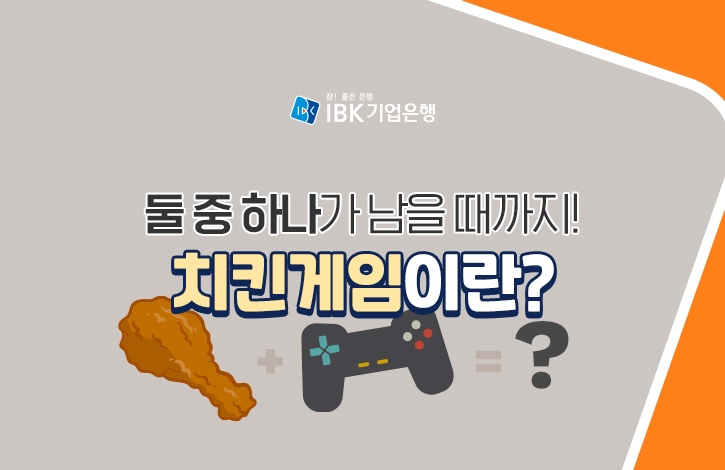 어떤 피할 수 없는 승부나 대결을 벌일 때, 흔히 ‘이판사판’이라 불리는 상황에서 ‘치킨게임’이라는 단어를 듣거나 본 경험이 있으실 것입니다. 특히 뉴스나 기사에서 자주 사용되는데요. ‘치킨’이 워낙 익숙한 단어이고, 상황과 문맥으로 대충 뜻을 알 수도 있다보니 치킨게임의 정확한 정의와 유래는 잘 모르는 분들도 있으시죠. ‘치킨게임’의 흥미로운 유래와 사례들, 오늘 IBK기업은행과 함께 알아보세요:-)