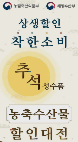 농림축산식품부와 해양수산부가 공동개최하는 ‘추석 성수품 농축수산물 할인대전’을 함께 알아두시는 것을 추천합니다. 해당 행사는 9월 1일부터 22일까지 진행되는 할인 행사로, 추석대표 성수품 13종과 소비촉진 필요물품 9종, 총 22종에 한하여 20% 할인을 지원하고 있습니다. 또한 유통업체 할인행사별 1인당 할인 한도가 기존 1만원에서 2만원으로 확대되며 더 큰 할인 혜택을 제공하는데요. 대형마트 8개사, 온라인 쇼핑몰 15개사, 생협 4개사, 수산 창업기업 4개사, 전통시장 등이 본 행사에 참여하는 만큼 추성 성수품을 준비하는 경우 '추석 성수품 농축수산물 할인대전'을 이용하면 다양한 상품을 만나보실 수 있습니다.