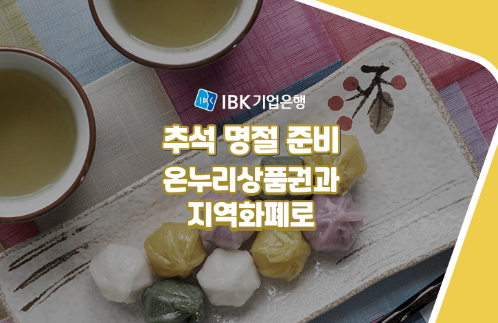 무더운 여름이 지나고 성큼 다가온 한가위, 그리고 상차림과 명절선물 준비로 분주해진 마음! 혹시 끝없는 지출로 인해 걱정하고 계신가요? 이럴 떄를 대비하기 위해 오늘 IBK기업은행에서는 명절 상차림 물가 정보와 장보기 꿀팁을 준비했습니다. 온누리상품권과 지역화폐를 이용해 똑똑하게 추석 상차림 비용을 절약하는 두 가지 방법, 함께 알아보시죠!