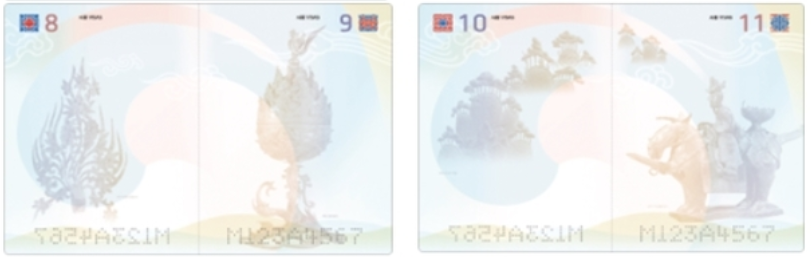그동안 시행되었던 책자형 사증란 부착 제도가 폐지되는 대신 사증 면수가 기존보다 2~10장 증가했습니다. 면수가 기존 48면에서 58면, 24면에서 26면까지 늘어났기 때문에 여유롭게 사용 가능하며, 우리 문화유산을 활용한 디자인을 통해 한국의 다채로운 전통과 문화를 느낄 수 있어요!