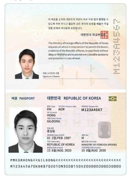 개인정보면은 여권 위조와 변조를 방지하기 위해 내구성, 내충격성 및 내열성 등을 갖춘 플라스틱 '폴리카보네이트'로 제작되었는데요. 레이저 각인을 통해 보안을 강화할 수 있기 때문에 최근 다양한 국가가 여권에 활용하고 있습니다. 기존 여권과 다르게 주민등록번호 뒷자리가 제외되고, 여권번호 체계가 변경되어 더욱 안전해졌다는 특징이 있어요!