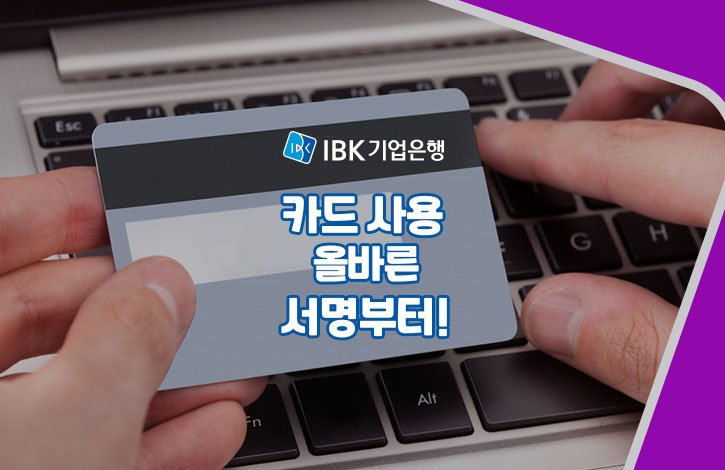 체크카드와 신용카드 뒷면에는 서명란이 있습니다. 많은 사람들이 이 서명란을 대수롭지 않게 생각하고 비워두는 경우가 있는데요. 카드 뒷면의 서명은 물론, 결제시 매출전표에 하는 서명은 신용카드 분실, 도난시 부정사용을 막는 중요한 장치 중의 하나라는 사실 ! 오늘은 IBK기업은행과 함께 신용카드 서명의 필요성과 올바른 사용법에 대해 함께 알아봅시다!
