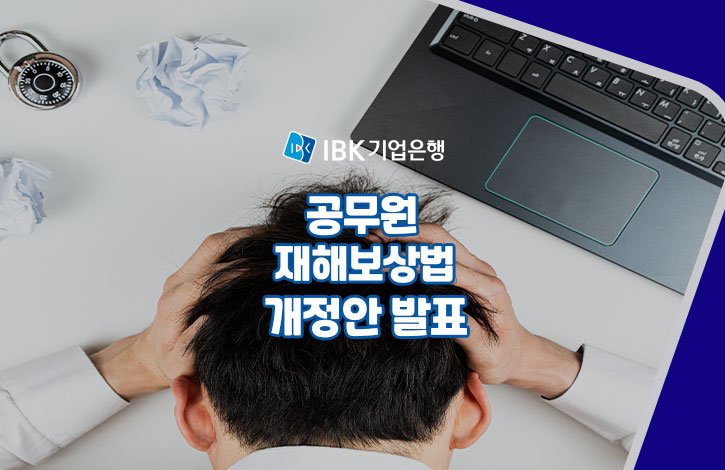 오늘은 IBK기업은행과 함께 공무원 재해보상법 개정안에 대해 알아보았습니다. 개정안이 통과되면 공무원의 직장 내 괴롭힘도 안전한 법적 보호를 받을 수 있게 됩니다! 공무원 재해보상법으로 직장 내 괴롭힘을 경험하는 모든 근로자 & 공무원들의 근로 환경에 긍정적 변화가 이루어지길 바라봅니다. 앞으로도 IBK기업은행이 생활에 도움이 되는 다양한 정보를 가득 담아 돌아오겠습니다. 감사합니다.
