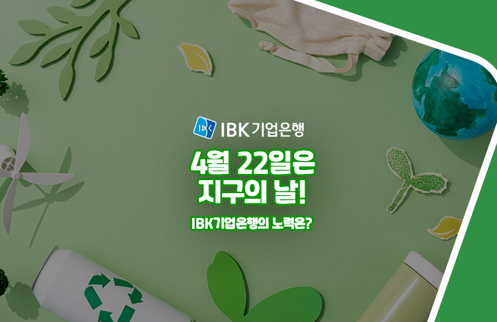 4월 22일, 오늘은 지구의 날이에요! 지구 온난화, 기후 위기 등 이미 우리 삶의 터전에 다양한 변화가 찾아오고 있는데요. 환경오염의 심각성을 일깨우기 위해 지구의 날이 제정되었어요. 오늘은 지구의 날의 의미와 IBK기업은행이 지구를 위해 어떤 실천을 하고 있는지 알아보겠습니다!