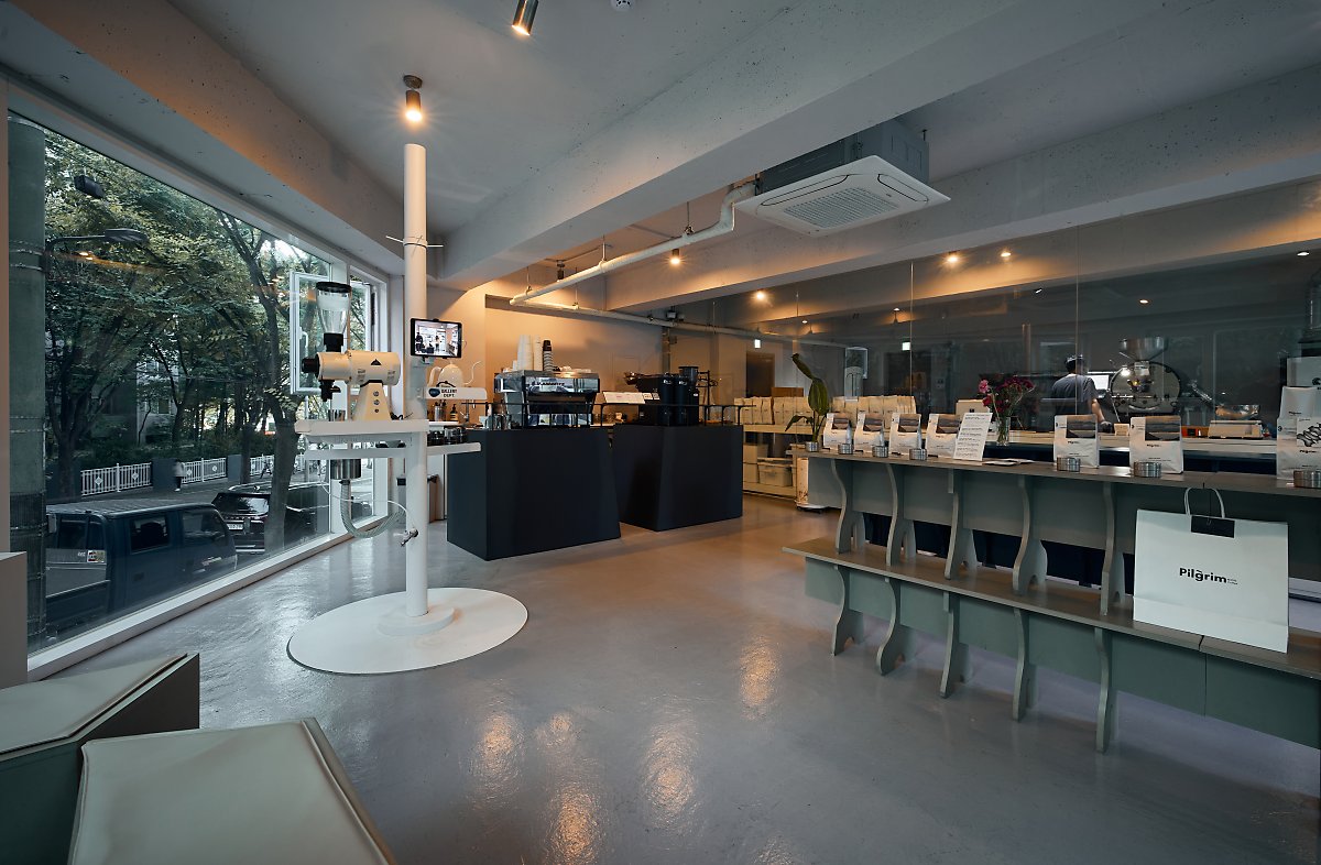 필그림 커피는 원두를 만드는 로스팅 룸과 원두를 맛볼 수 있는 쇼룸으로 만들어졌어요. 골든블랙 블렌드, 코발트블루 블렌드 두 가지가 대표 상품이라고 할 수 있어요. 로스팅 룸과 쇼룸 모두 통유리로 되어 있어서 사계절을 만끽할 수 있어요. 함께 일하는 팀원들이 에너지가 넘쳐서 방문하시는 분들도 덩달아 기분 좋은 에너지를 얻을 거예요.