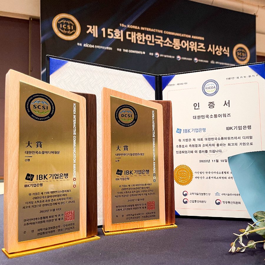 IBK기업은행을 향한 고객님들의 관심과 사랑 덕분에 대상 수상할 수 있었습니다.