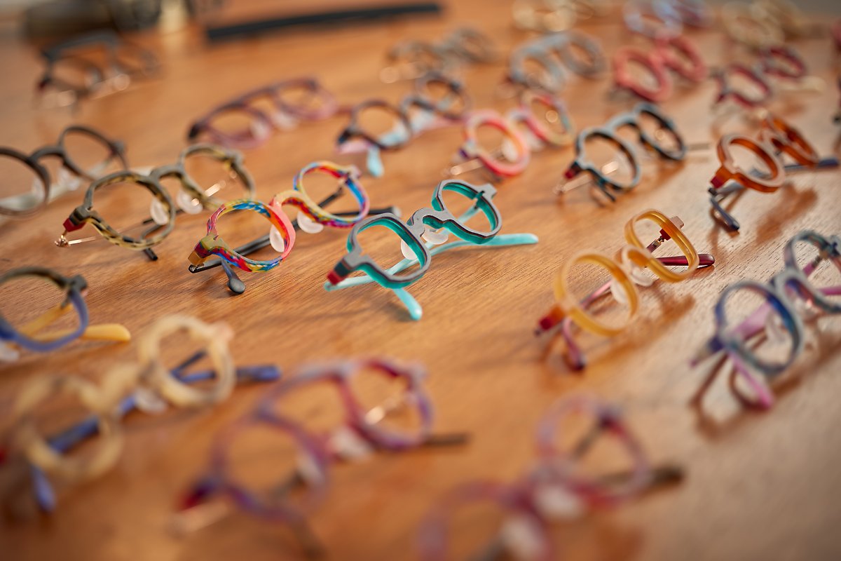 제작 방식까지 디자인한다는 생각으로 수제 안경을 만들고 있어요. 스케치, 도면 작업, 소재 선정, 구조와 조립 방식의 개발, 세부 조정 등 거의 모든 과정을 기계 작업을 최소화하고 직접 손으로 자르고 톱질하면서 제작하고 있죠. 전 세계 많은 수제 안경들 중에서 가장 차별화된 수제 안경이라고 자신합니다.