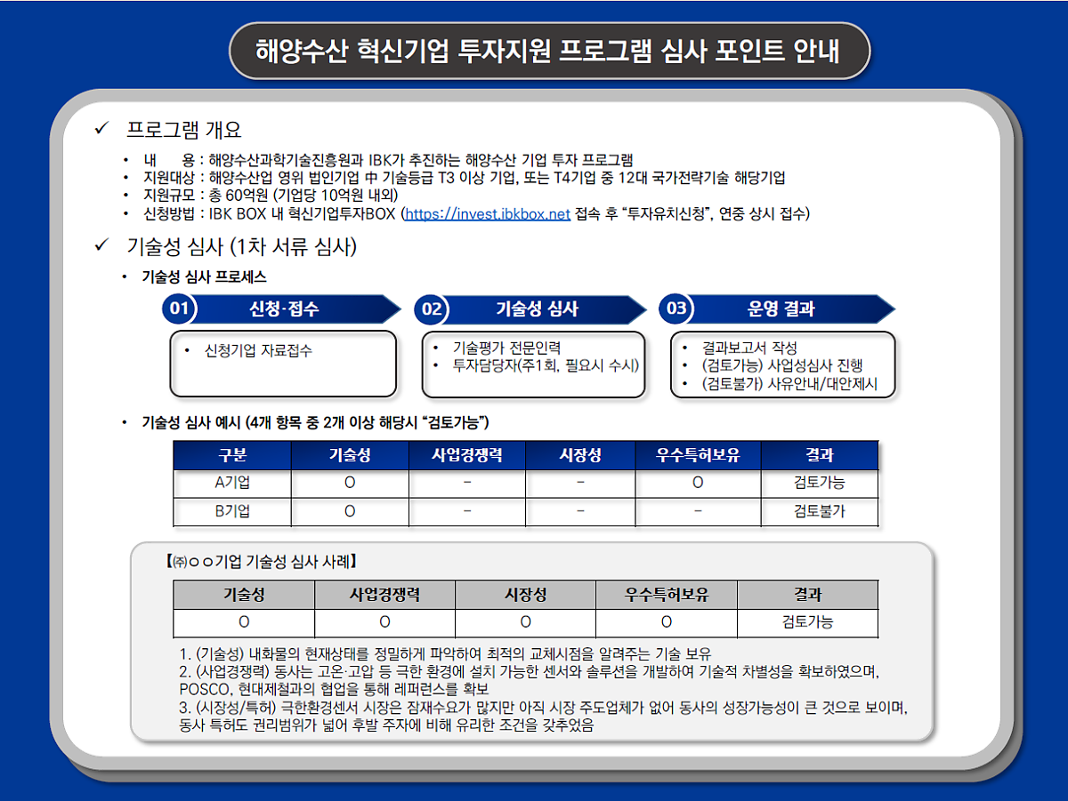 <투자지원 프로그램 심사 포인트 안내>