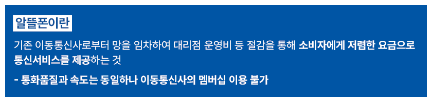 알뜰폰이란 기존 이동통신사로부터 망을 임차하여 대리점 운영비(건물 임대료, 인건비 등)
