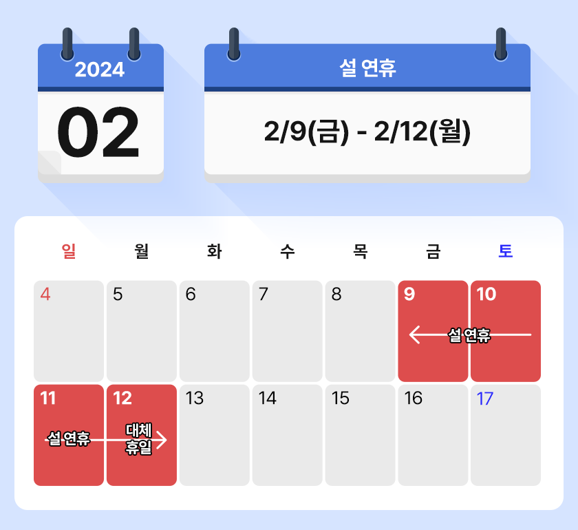 2월은 대명절 설을 맞이하며 2월 9일(금)부터 2/12(월)까지 총 4일 간 연휴가 이어지는데요.