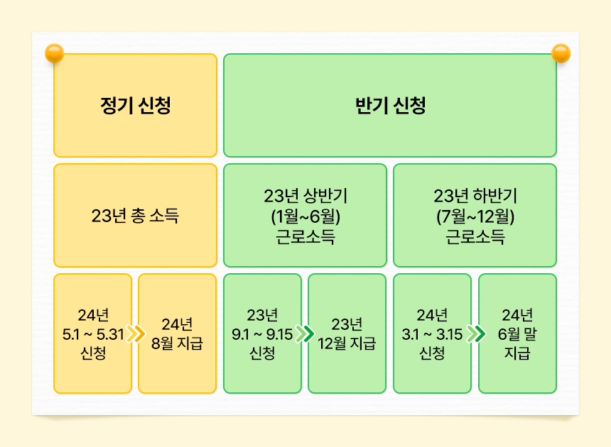 근로자녀장려금은 정기 지급과 반기 지급 중 선택하여 신청이 가능한데요.