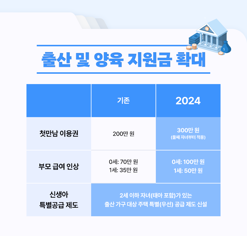 2024년부터 0세는 100만 원, 1세는 50만 원으로 상향되었습니다.