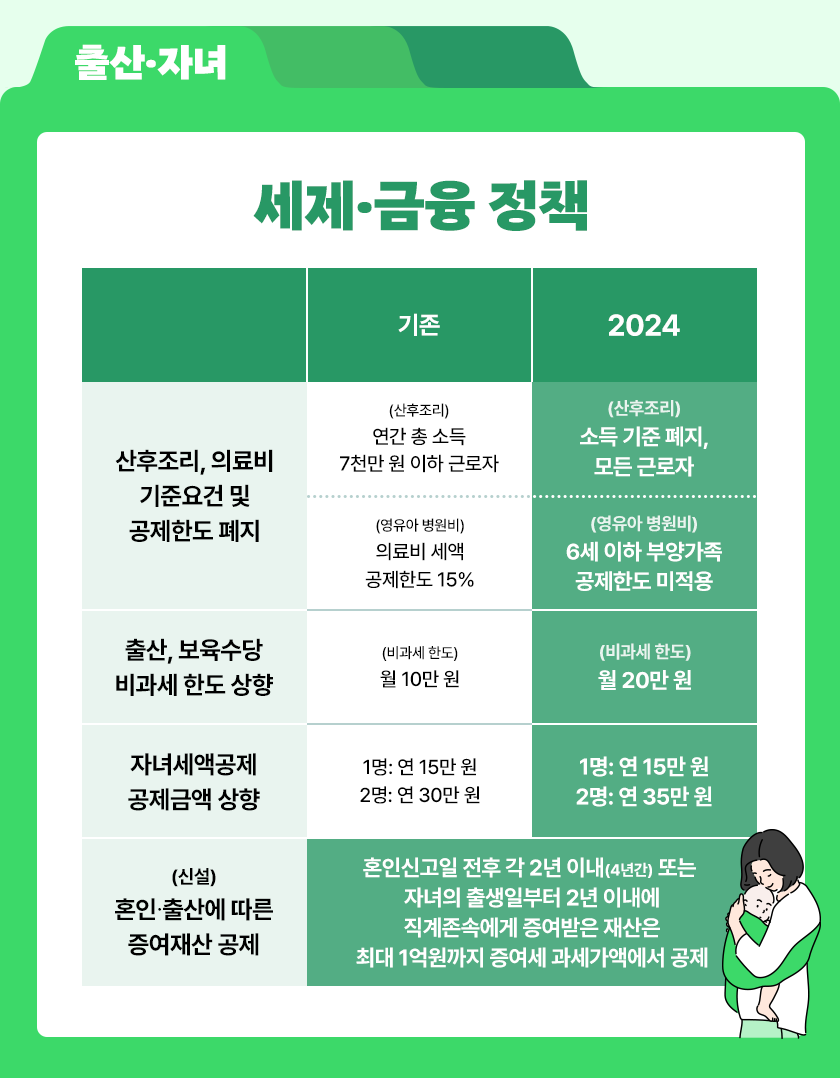산후조리비용 공제혜택의 소득 기준이 폐지되면서 24년부로