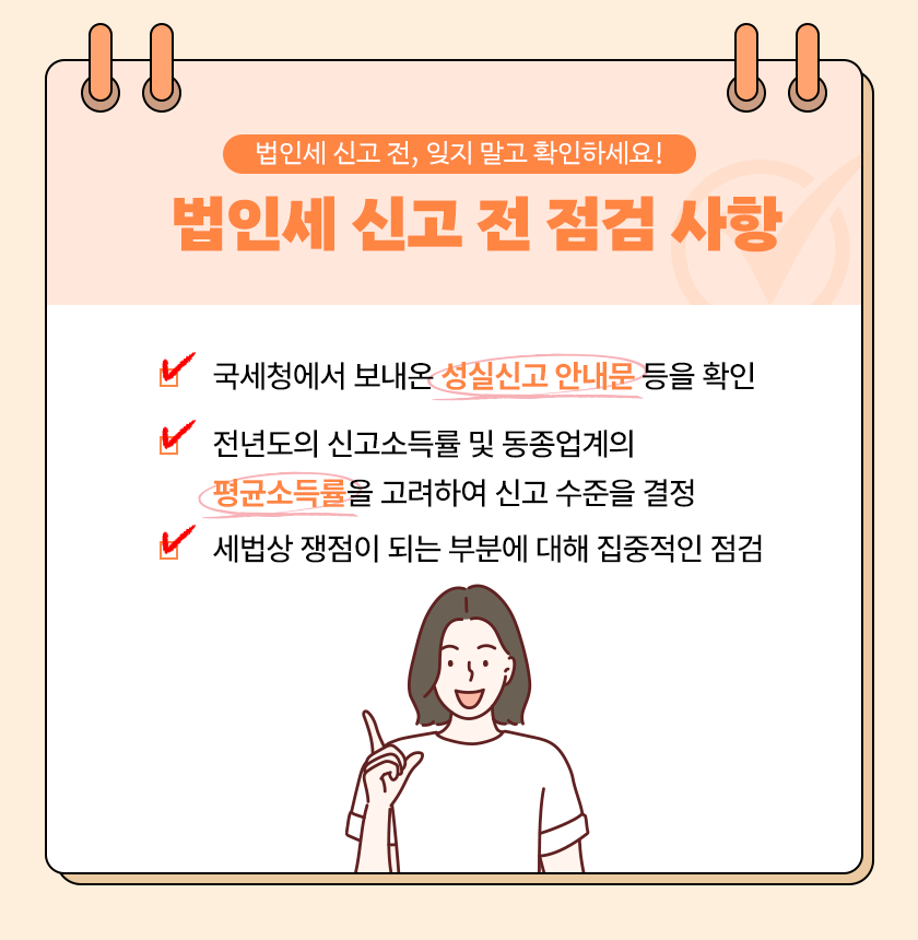 법인세 신고 시에는 세법상 문제가 없도록 집중적인 점검이 필요합니다.