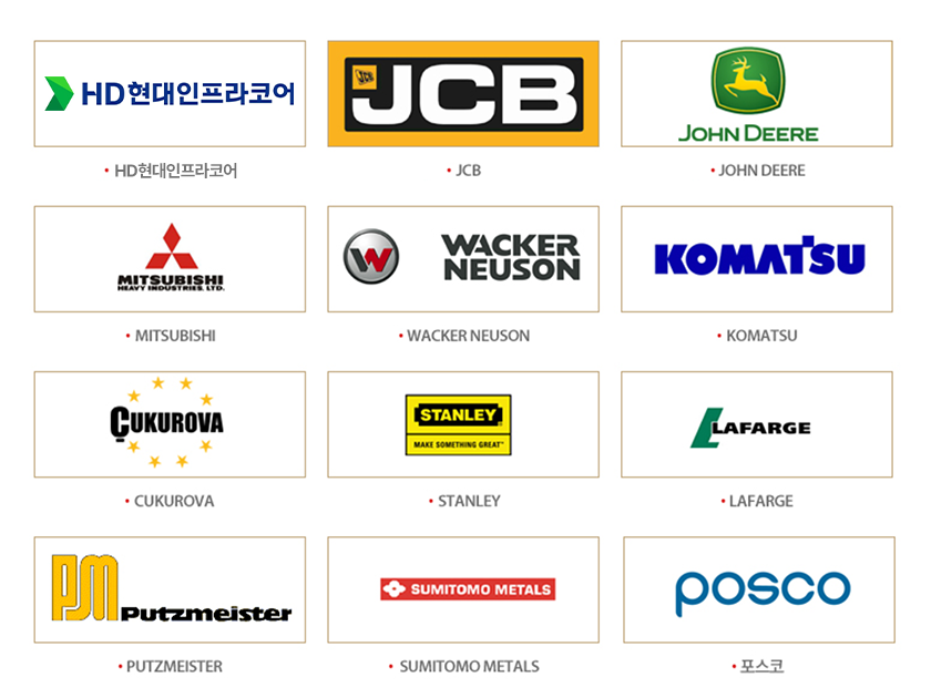 HD현대인프라코어, ㈜두산, 포스코, JCB, STANLEY 등
