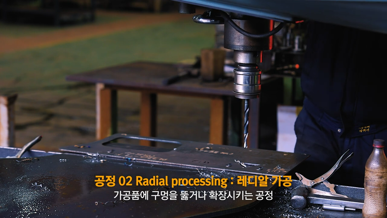 절단된 철판에 타공하는 과정을 거칩니다.
