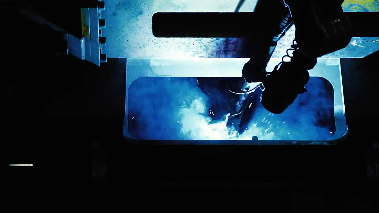 1차 용접은 자사의 자동 로봇 용접기를 이용합니다.