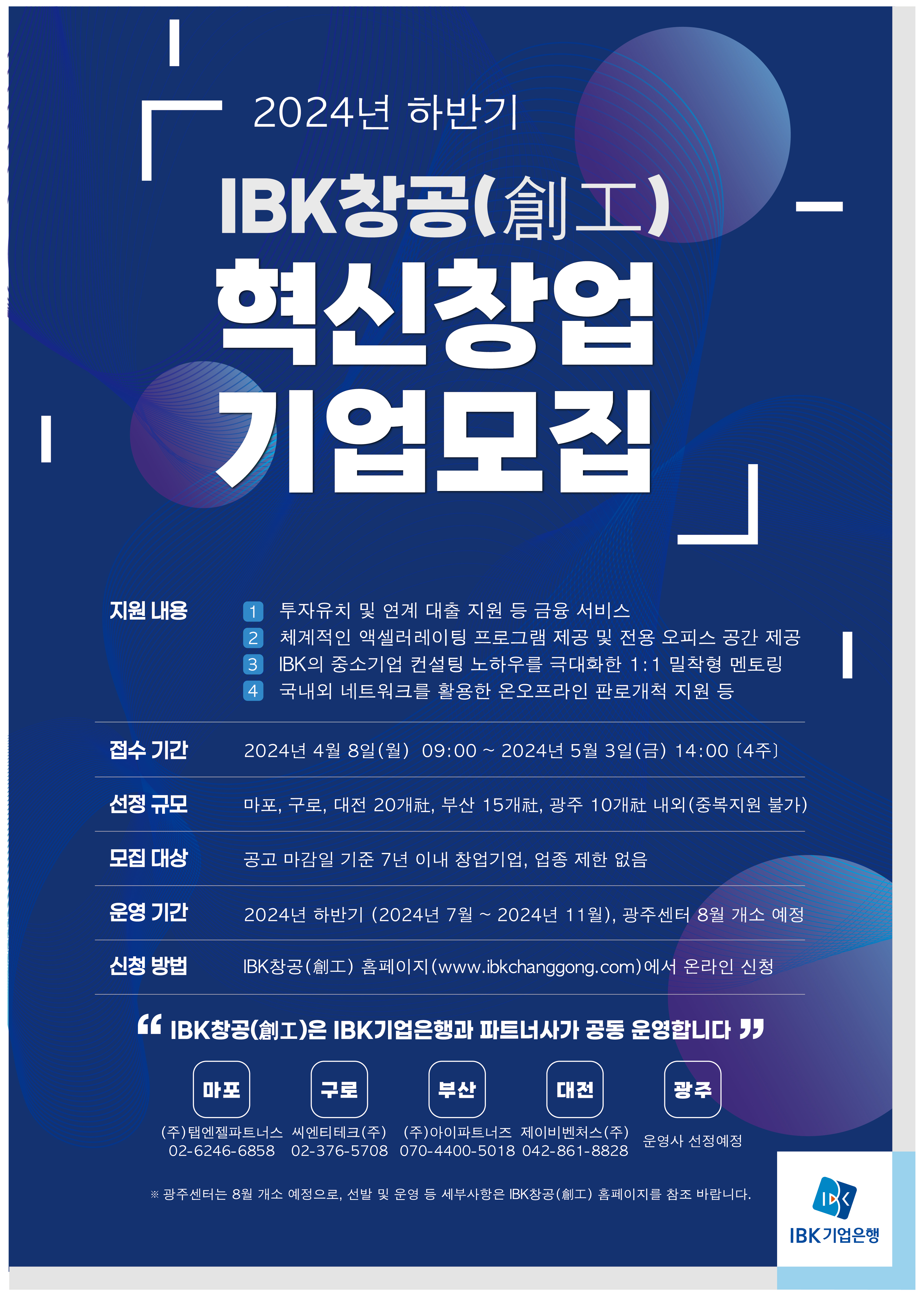 IBK창공(創工)에서 2024년 하반기 혁신창업기업을 모집합니다!