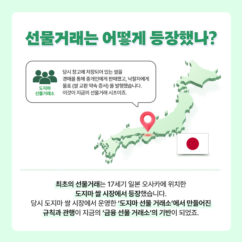 매우 흡사한 기능을 갖추고 있어 최초의 선물거래로 알려져 있습니다.