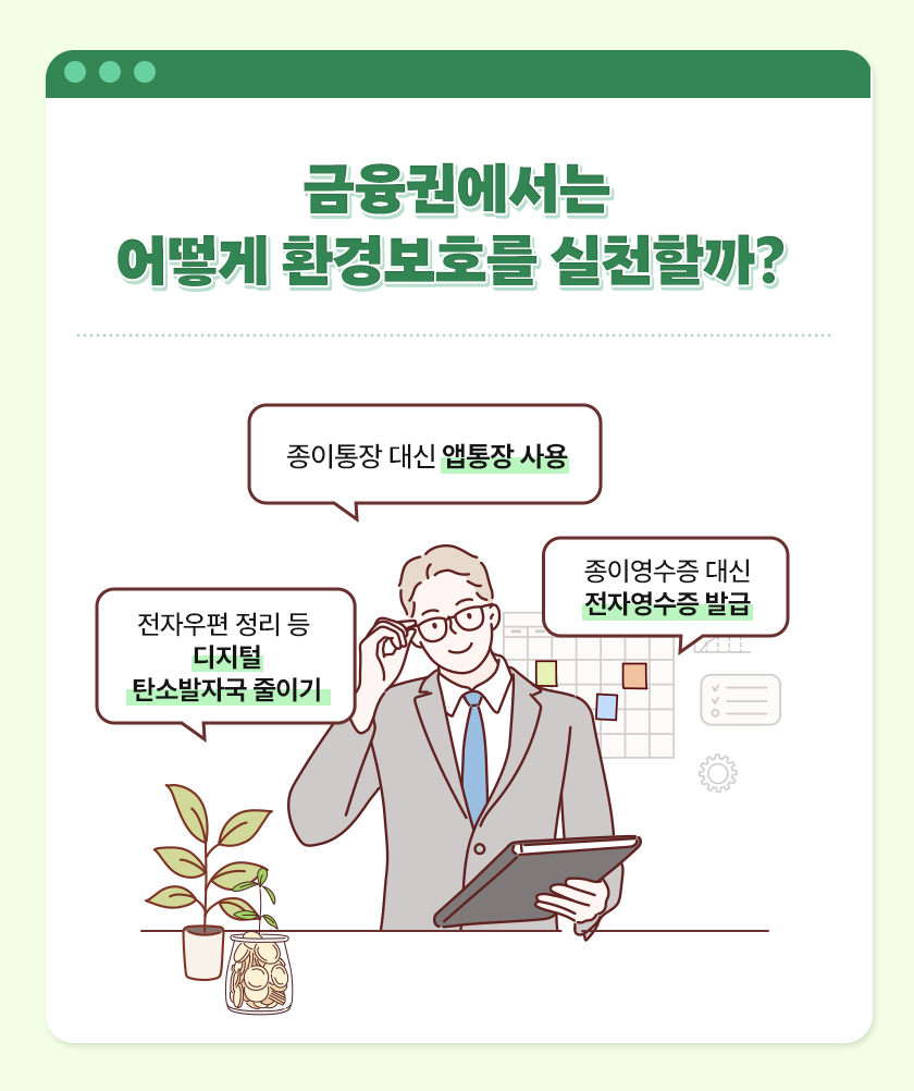 금융권에서 환경 보호를 위해 실천하는 것은?