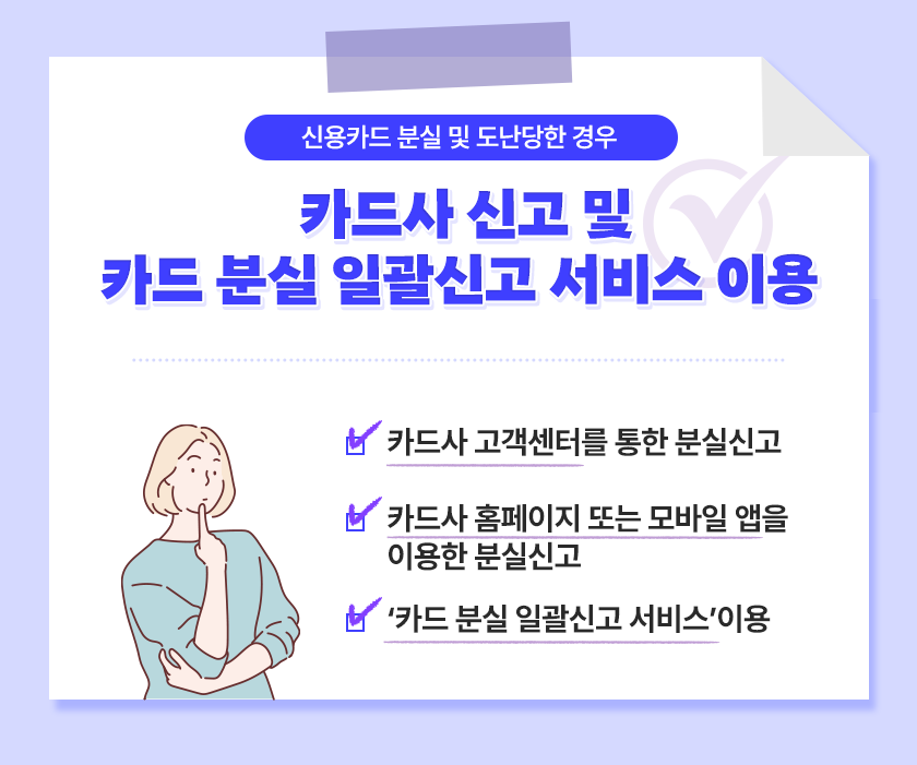 분실 신고 및 신용카드 부정사용 여부 확인 후,