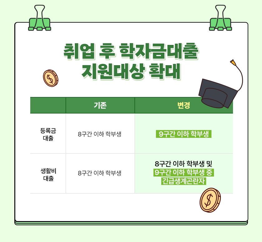 생활비 대출은 기존 8구간 이하 학부생을 포함해