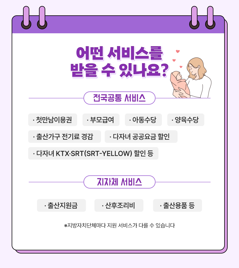 각종 출산 및 임신 지원 서비스가