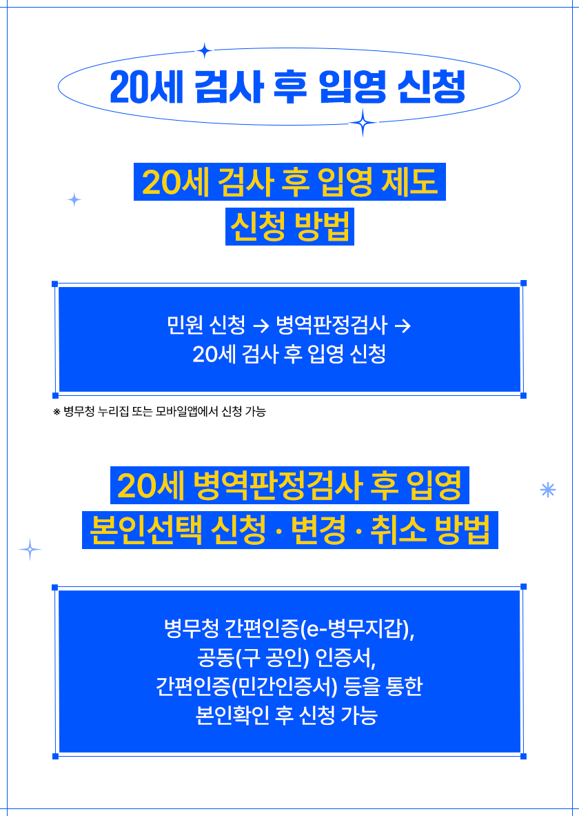 20세 검사 후 입영 제도를 소개해 드리겠습니다.