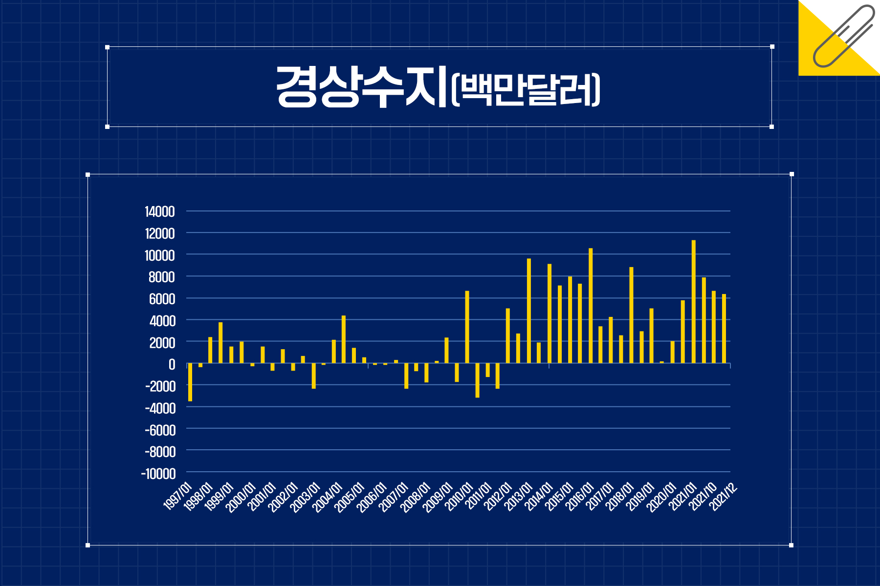 반대로 경상수지 흑자가 지속되면 달러가 외환시장에 유입됨에 따라 달러 가치가 낮아지면서 원/달러 환율은 하락한다. 2013년 10월에는 이런 기사가 있었다. 경상수지는 2013년 1월~8월까지 흑자 누적액이 422억 7,700만 달러로, 2012년 2월 이후 18개월 연속 흑자를 기록하여 2013년 10월 24일 원/달러 환율이 1,055.80원까지 하락했다고 보도했다.