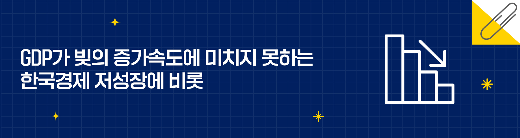 GDP가 빚의 증가속도에 미치지 못하는 한국경제 저성장에 비롯