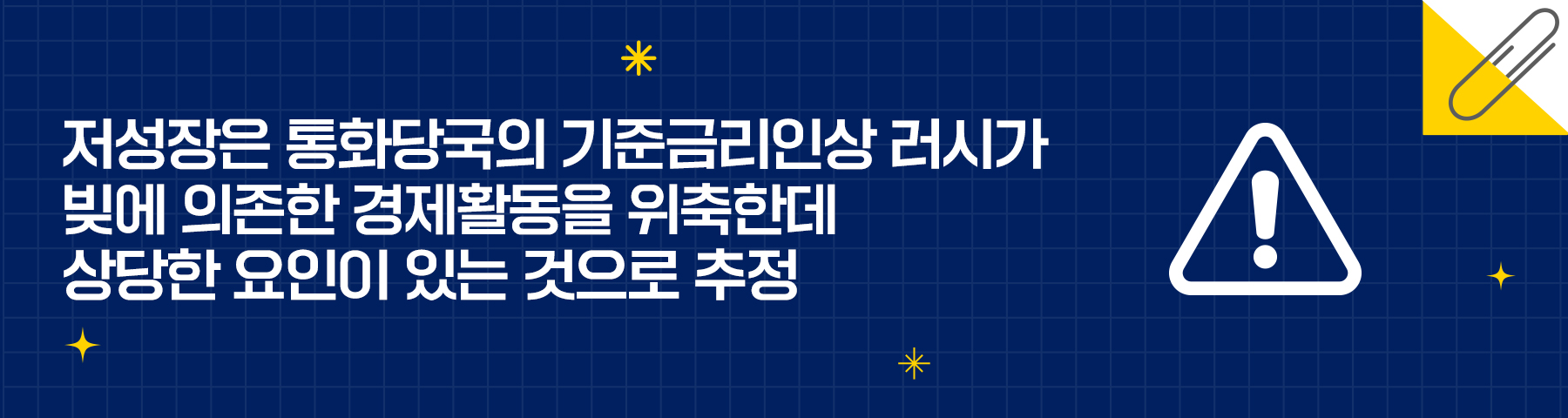 포스트 코비드에서 일어난 저성장은 통화당국의 미 연준을 추종한 기준금리인상 러시가 빚에 의존한 경제활동을 위축한데 상당한 요인이 있으며 과다한 빚이 한국경제의 탄력성을 떨어뜨린 요인으로 작용한 결과다.