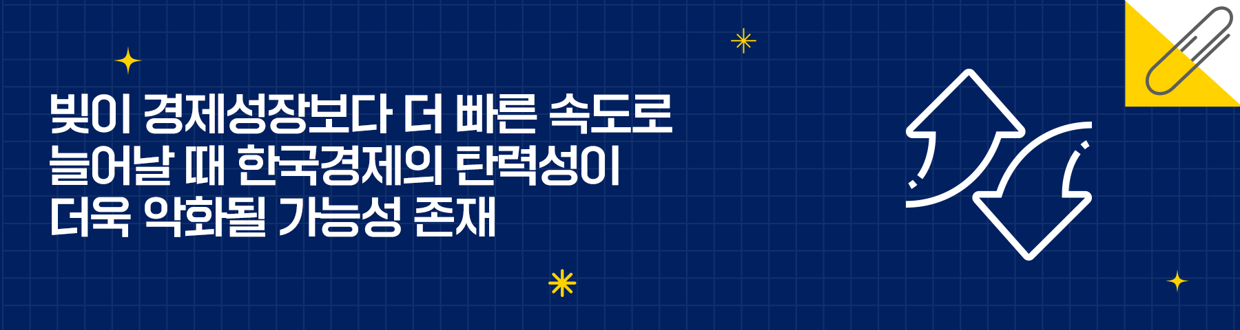한국경제에서 빚은 경제탄력성을 회복하기 위해 극복해야 할 도전이다. 일본경제의 장기침체에 만성화된 좀비기업이 정상기업을 갉아먹는 좀비화가 핵심요인으로 작용했다는 것이 전문가들의 컨센서스다. 빚과 성장 사이의 역 U자형 관계로부터 우리나라 가계 빚이 상위 소득분위에 집중된 현상은 빚의 부실화에 앞서 소비위축을 초래할 가능성을 제기한다.