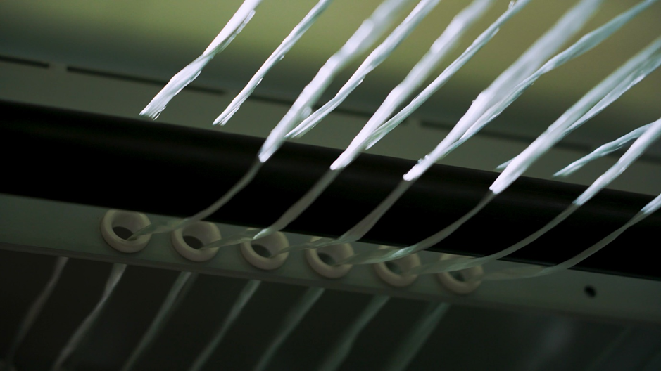 여러 가닥의 유리섬유가 결합이 됩니다.