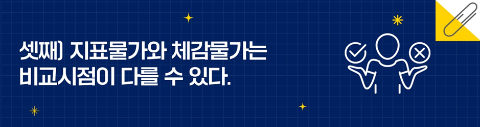 셋째는 지표물가와 체감물가는 비교시점이 다를 수 있다.