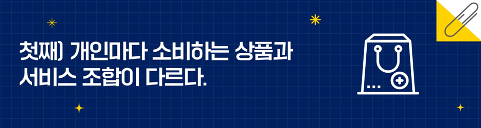 첫째는 개인마다 소비하는 상품과 서비스 조합이 다르다.