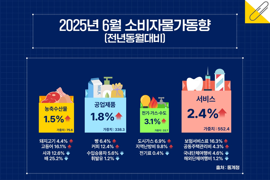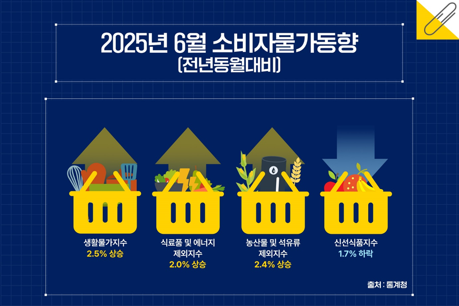 대표적인 지표물가인 소비자물가지수(CPI)는 가계가 일상생활을 영위하기 위해 구입하는 상품과 서비스의 가격 수준을 측정한다. 소비자물가지수를 편제하는 통계청이 7월 2일 발표한 2025년 6월 CPI 동향을 보면 전년동월과 비교해서 2.2% 상승한 것으로 나타났다.
