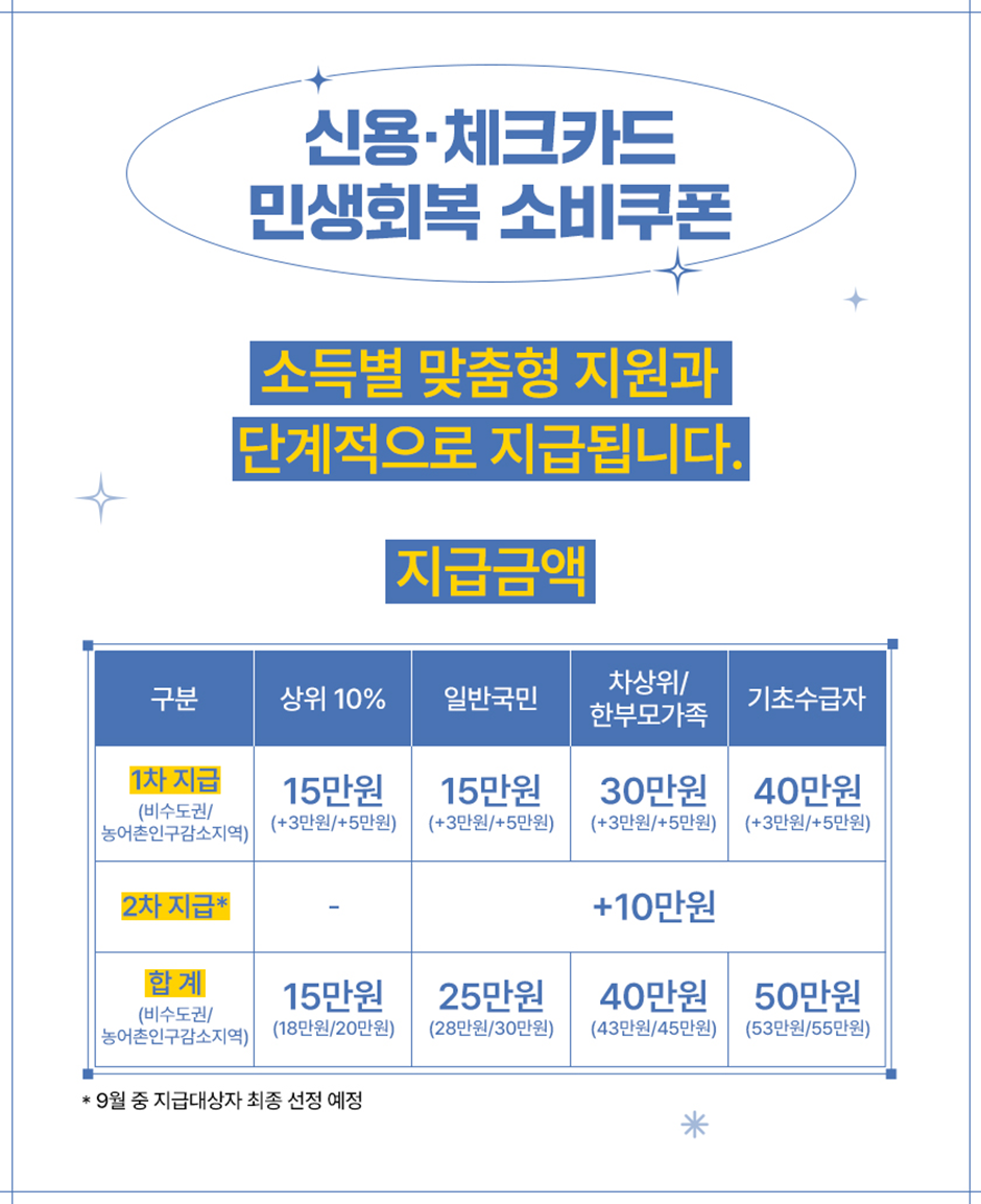 소득별 맞춤형 지원과 단계적으로 지급됩니다.
