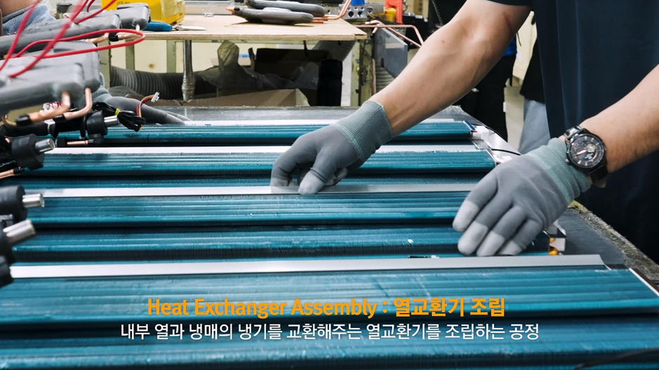 교환해 주는 열교환기를 조립하는 공정이 진행됩니다.