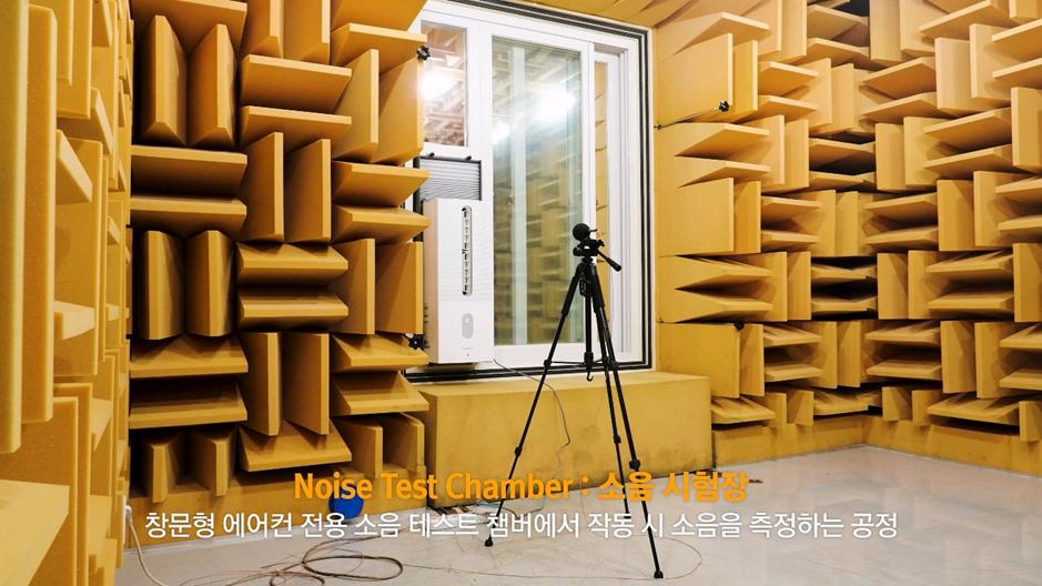 소음 시험장에서는 창문형 에어컨 전용 소음 테스트 챔버에서