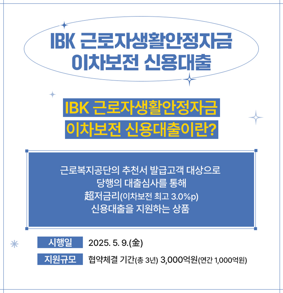 IBK 근로자생활안정자금 이차보전 신용대출을 제공합니다.