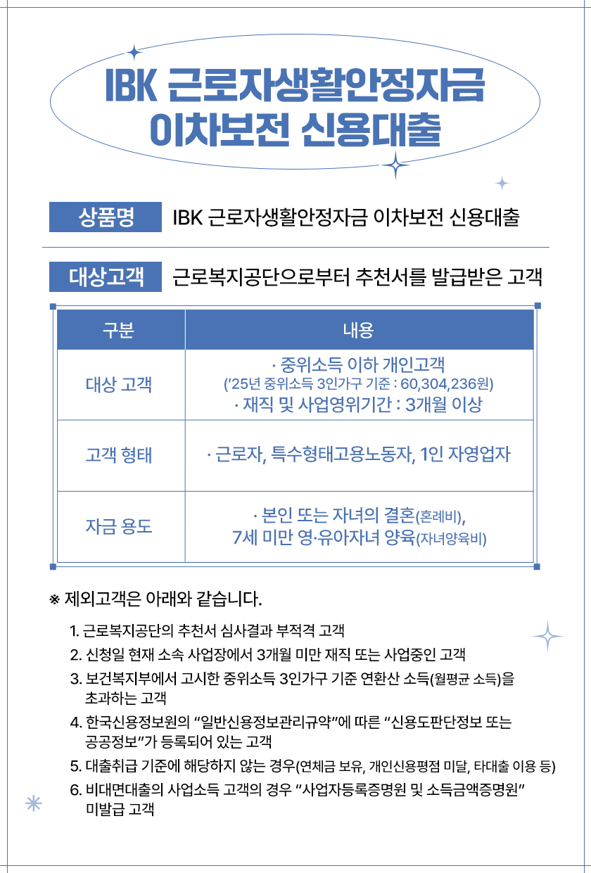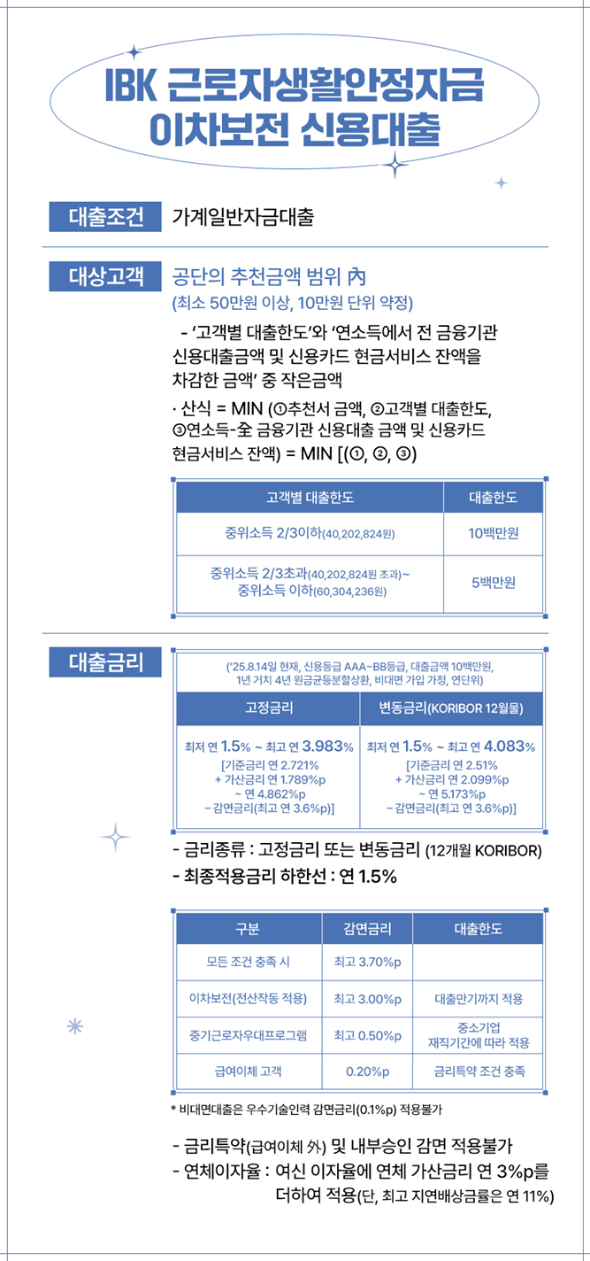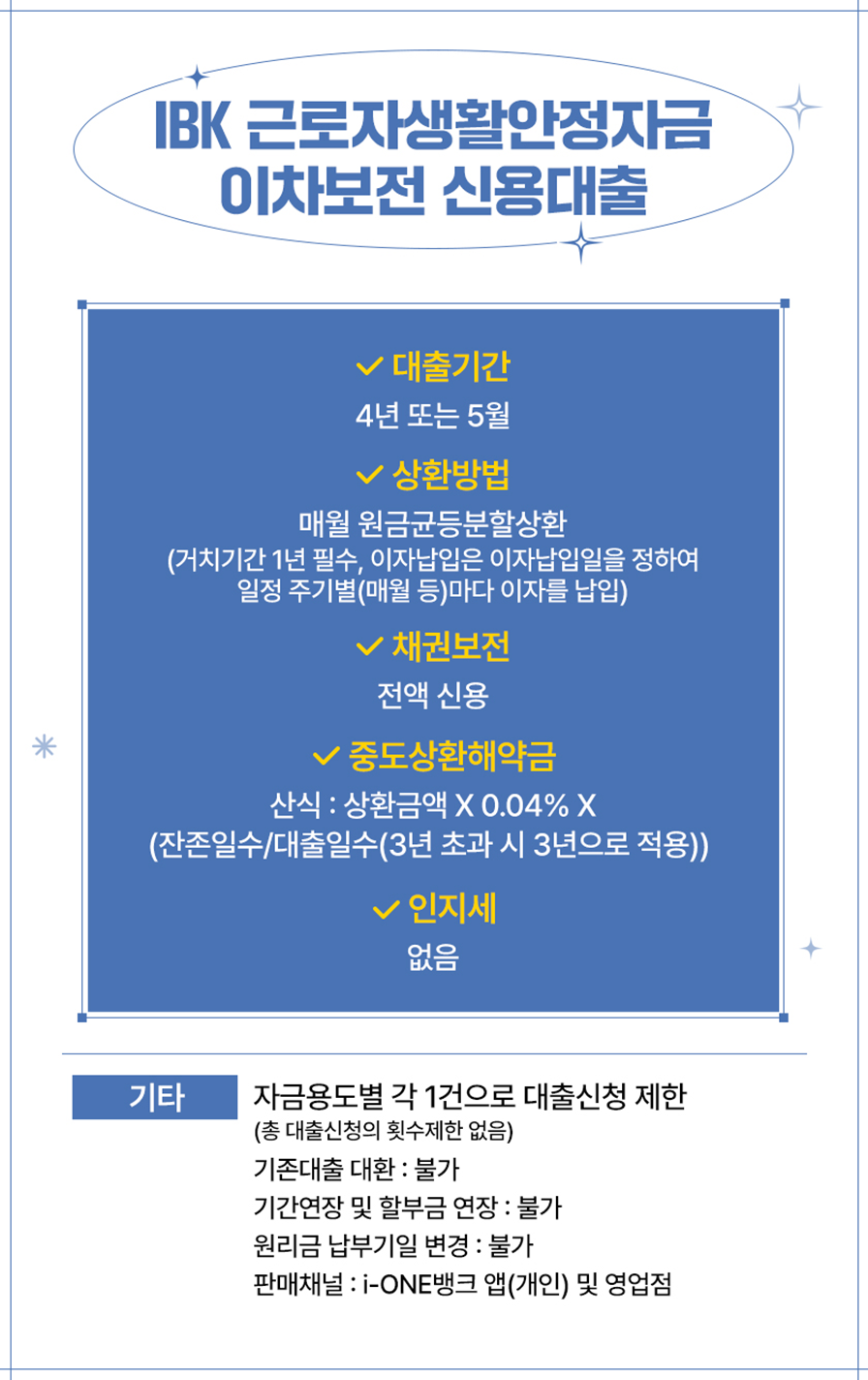 IBK 근로자생활안정자금 이차보전 신용대출을 제공합니다.