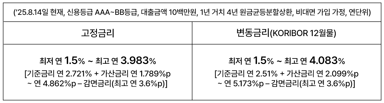 * 비대면대출은 우수기술인력 감면금리(0.1%p) 적용불가
