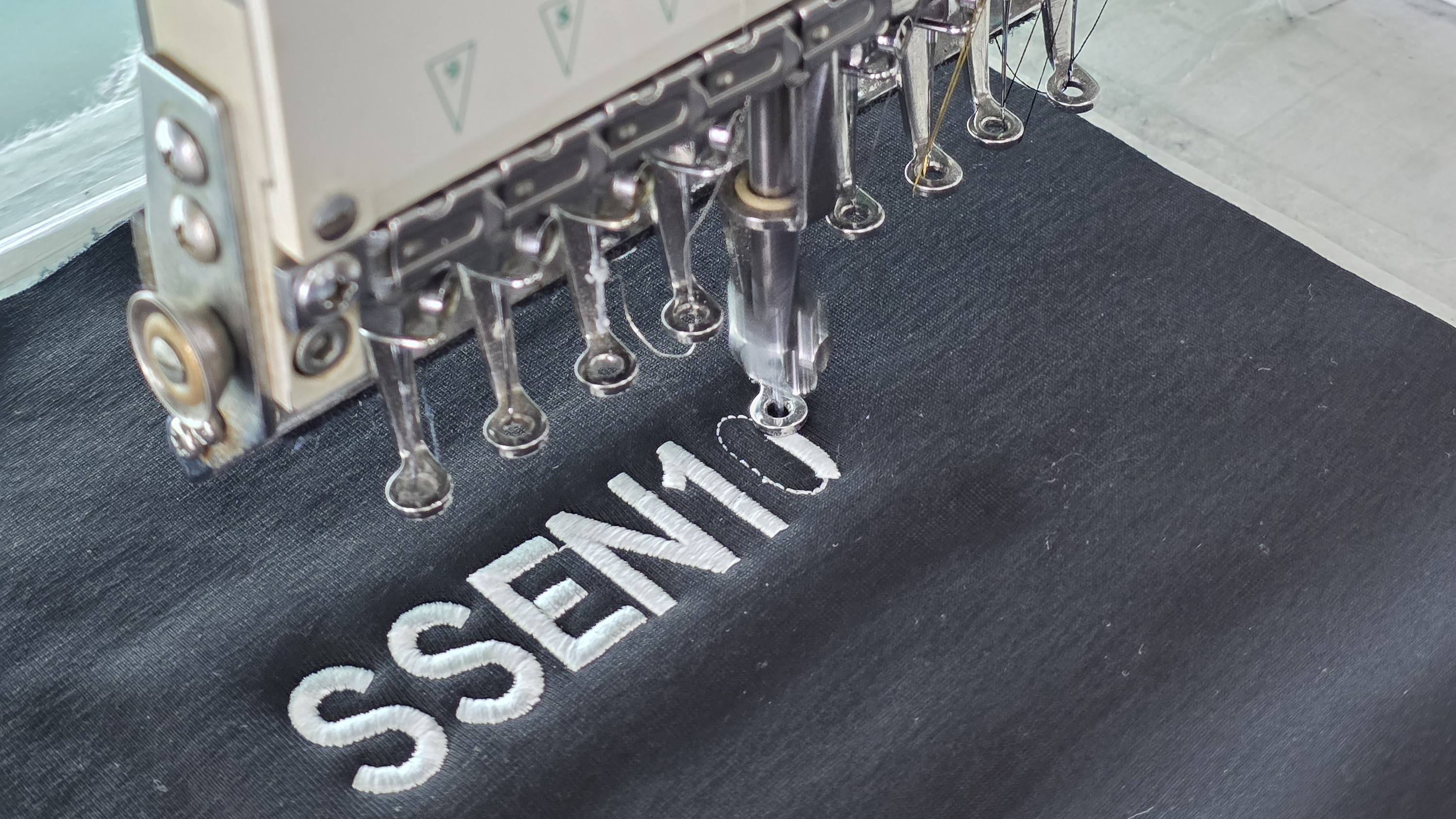 자수로 새겨 넣는 공정입니다.
