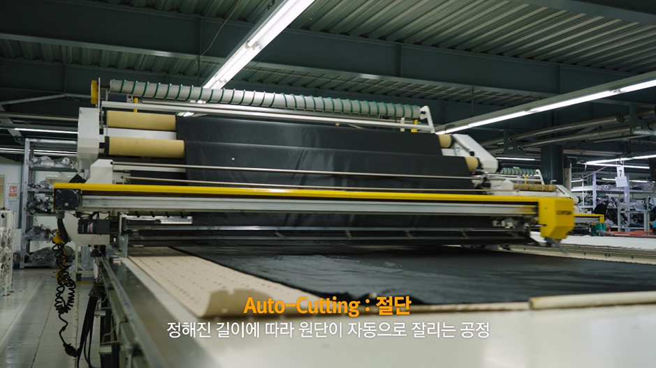 절단 공정에서는 원단이 자동으로 펼쳐져